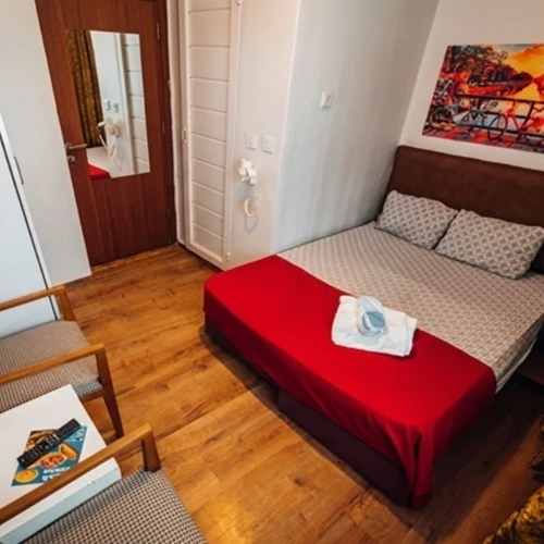 Firmamız bünyesinde yer alan Ekonomik Stüdyo oda, misafirlerine sade, temiz ve bütçe dostu bir günlük kiralık konaklama seçeneği sunar. Tek hacim içerisinde düzenlenmiş uyku alanı, mini buzdolabı, çalışma köşesi ve banyo düzeni ile temel ihtiyaçlara yönelik konforlu konaklama imkânı sağlar. Kısa süreli kalışlar, iş ziyaretleri veya şehir içi konaklamalar için tasarlanan bu ekonomik stüdyo, gereksiz detaylardan uzak, işlevsel bir yapıya sahiptir.