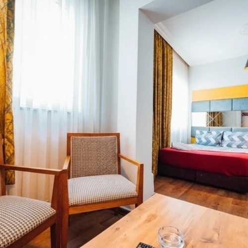 Odamız, kullanıma hazır mobilyalar ve temel ev ekipmanları ile eşyalı oda konforu sunar. Düzenli, sade ve bakımlı iç tasarımı sayesinde çantanızı bırakıp hemen yerleşebileceğiniz bir yapıdadır. Yatak, oturma alanı ve saklama bölümleri, küçük metrekare içinde maksimum verim sağlayacak şekilde planlanmıştır. Böylece hem kısa konaklamalarda hem de birkaç günlük şehir ziyaretlerinde rahat bir kullanım elde edersiniz.